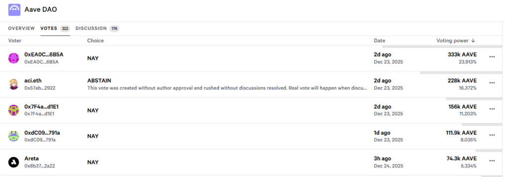 The proposal had been authored by Ernesto Boado, co-founder of BGD Labs, however Boado publicly rejected the choice to push it to a vote, saying he had not been notified and didn’t assist the model submitted.