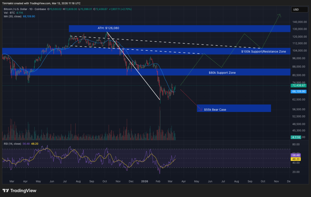 Bitcoin has been above $71,000 for a lot of the day up to now, and its worth motion seems clear and promising. After absorbing excessive macro noise round oil costs and the battle in Iran (that are nonetheless dominating TradFi headlines), the asset has bounced again with conviction.
